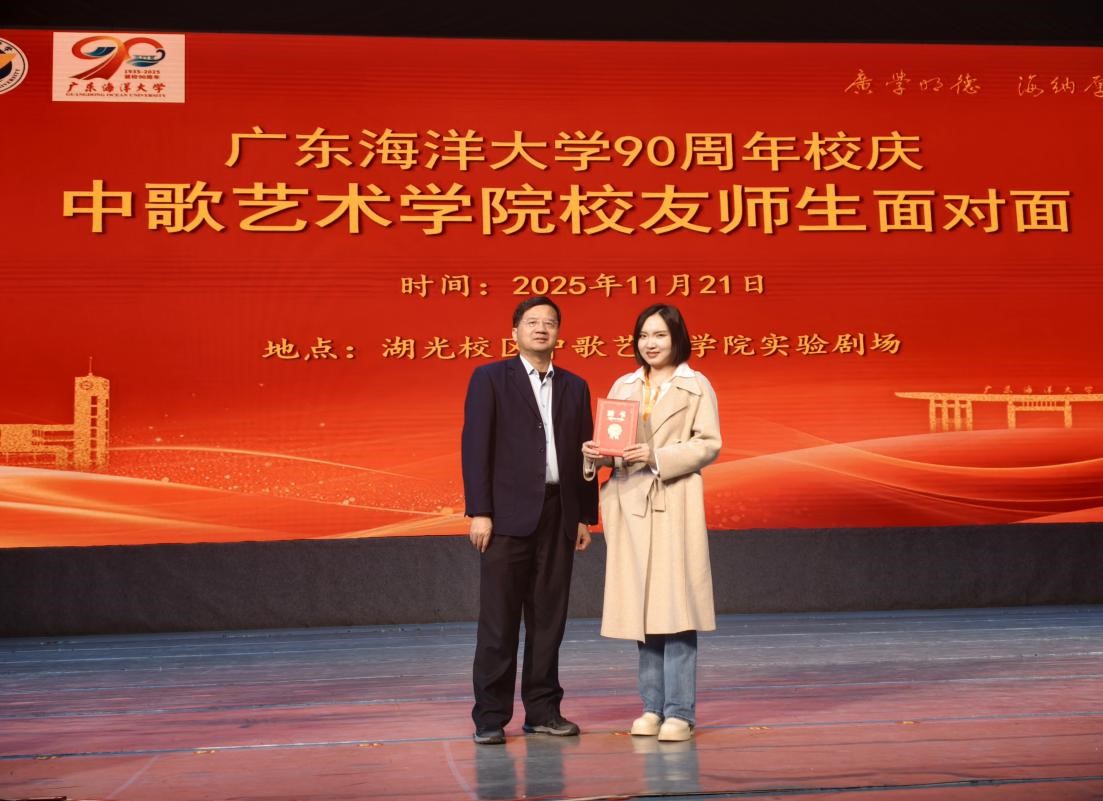 创新创业指导师”聘书。翟周在总结中鼓励学子以校友为榜样,坚守艺术审美初心,勇于跨界探索实践,传承海大“广学明德、海纳厚为”的校训精神,在艺术与职业的融合之路上稳步前行。