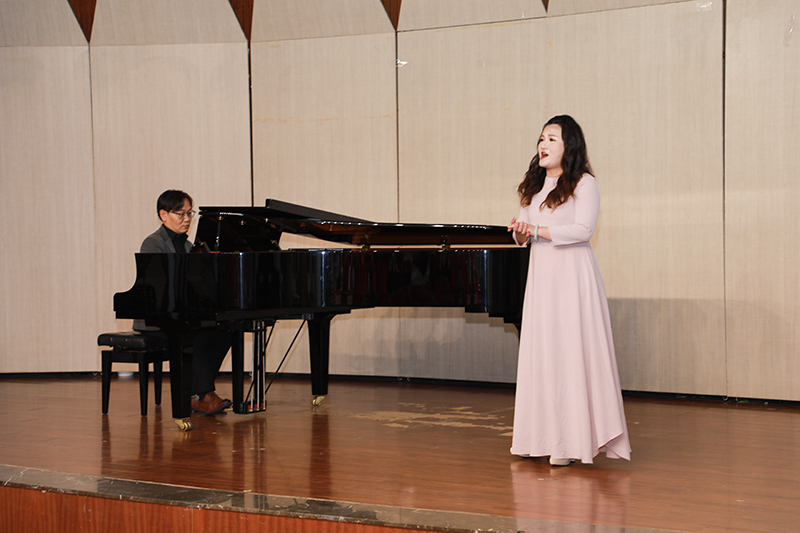 汪洁演唱《汪畔独步寻花(唐·杜甫)》作为讲座的开场,紧接着演唱《白头吟(汉·卓文君)》、敕勒歌(南北朝·乐府民歌)等几首古诗词。同时结合自身的多年演唱技巧和学习经验展开分享。她通过生动的演唱案例,详细介绍了古诗词的演唱实用技巧。
