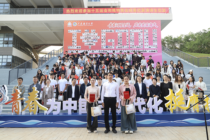 学校党委书记杨洲发表讲话。他代表学校党委和全体师生员工,向圆满完成国家任务、为校争光的师生表示最热烈的祝贺和最诚挚的感谢。杨洲指出,参演师生克服困难、连续作战,用专业和热情为全国体育盛会增添了青春亮色,用实际行动诠释了“青春闪耀全运,荣光共筑海大”的深刻内涵。他强调,此次展演是我校将艺术实践融入国家大事、将个人成长对接时代需求的生动体现,是一堂鲜活的“大思政课”。他希望全体师生将这份荣耀转化为前进动力,发扬全运精神,积极投身学校发展和粤港澳大湾区建设。