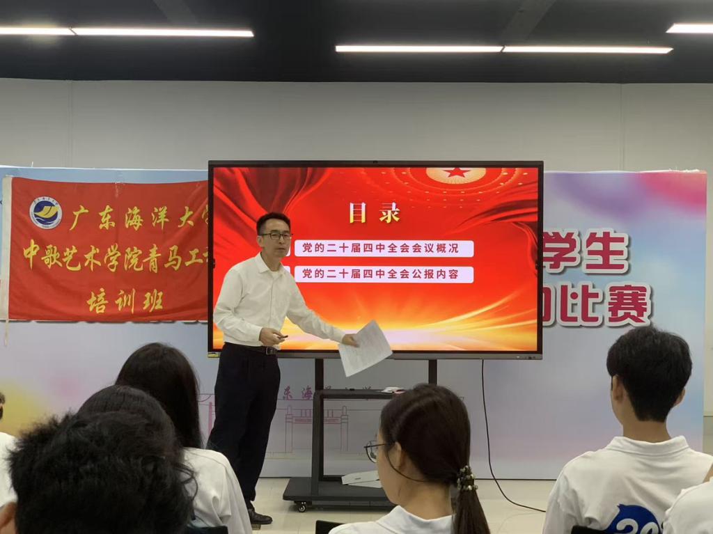 为深入学习贯彻党的二十届四中全会精神,引领青年学子将理论学习转化为奋进实践,12月24日下午,美女av党委副书记翟周在海创楼303室为青马班46名学员作专题宣讲。
