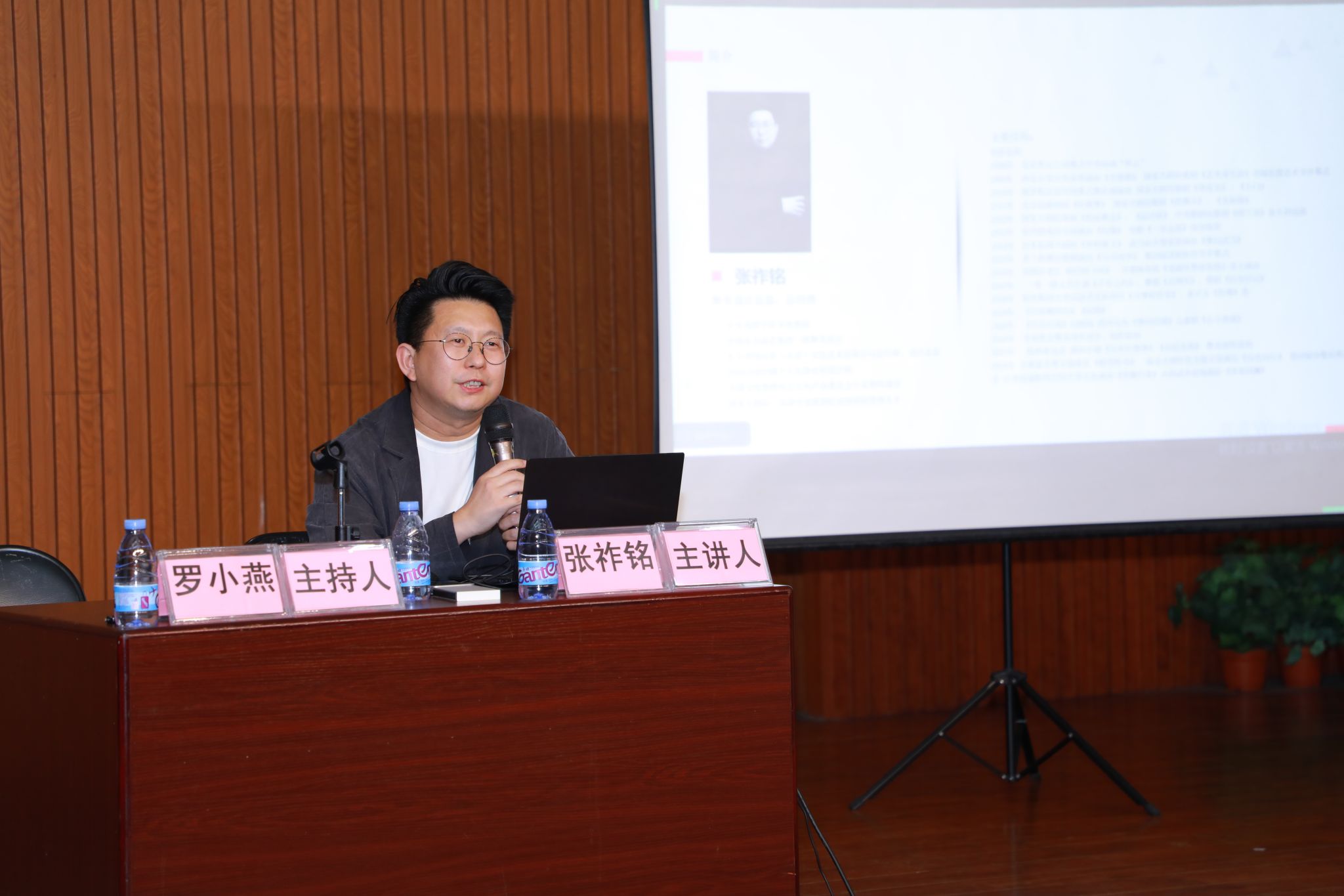 讲座伊始,罗小燕副院长简要介绍了张祚铭老师的从业背景与行业成就。张祚铭深耕舞美设计领域多年,长期专注文旅演出、实景演艺、群落式演出等创作方向,拥有深厚的专业积淀与丰富的一线实践经验,其作品将自然意境与舞台美学巧妙结合,形成了“融自然于舞台、化风物为布景”的独特艺术风格,业内口碑广受认可。